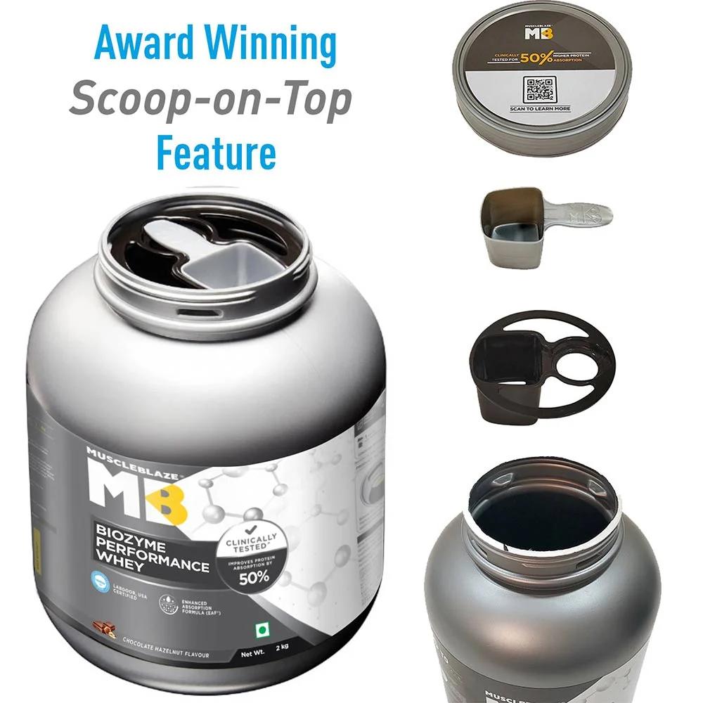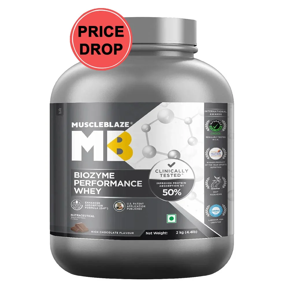 • MuscleBlaze ® Biozyme Performance Whey is a Labdoor, USA tested & certified whey protein formulation with the highest possible grading of A+ for its all-accurate claims & purity. Launched in a delicious Rich Chocolate flavour